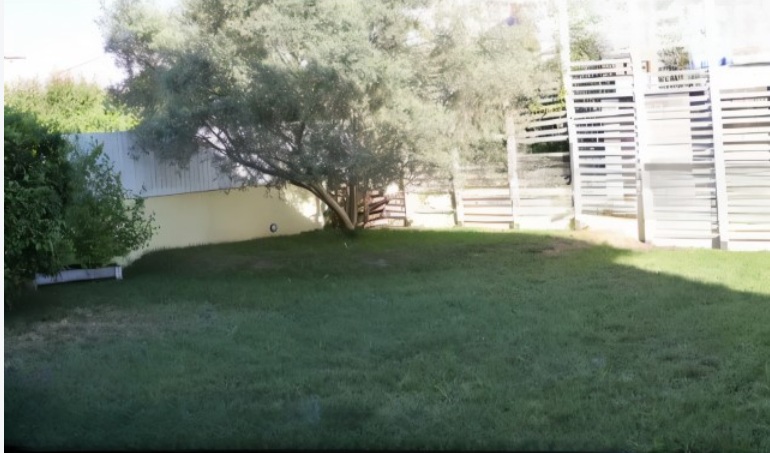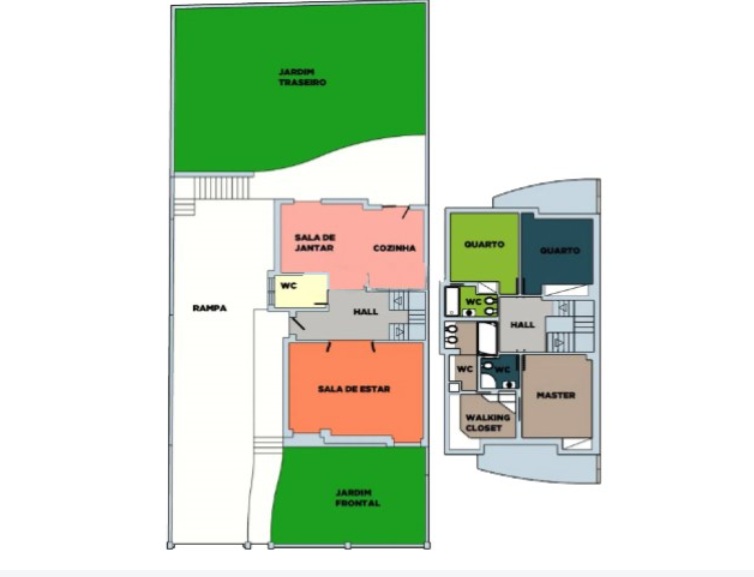 Dispõe de dois logradouros ajardinados (frontal e traseiro), com 45,5 m² e 129 m², sendo o jardim traseiro ideal para instalação de piscina.